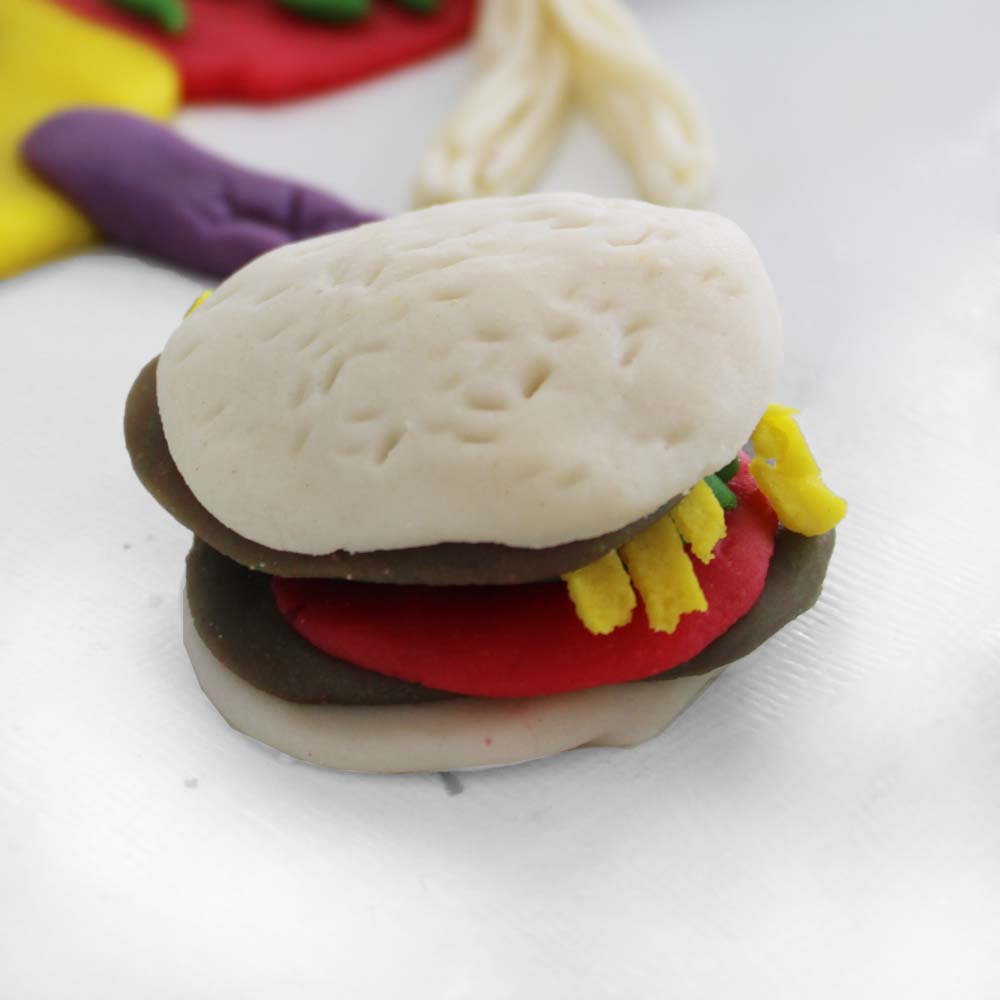 Press, shape, and build your own playdough burgers! With fun molds and accessories, kids can create buns, patties, veggies, and more. Let your little chef cook up creativity!